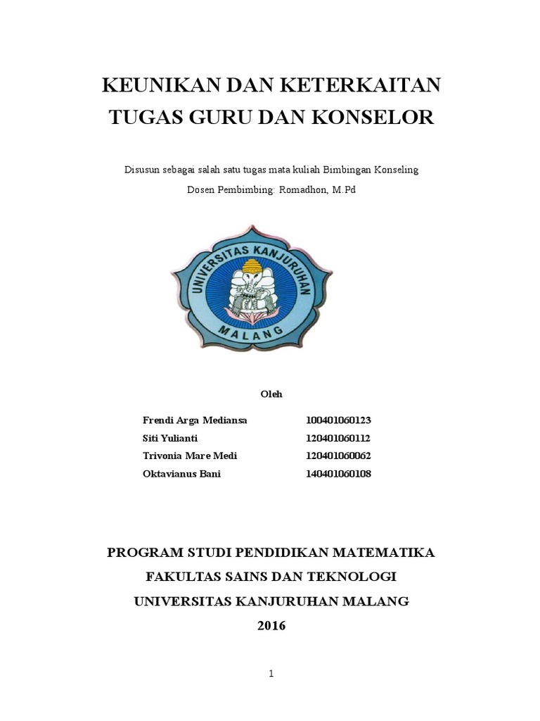 MAKALAH KEUNIKAN DAN KETERKAITAN TUGAS GURU DAN KONSELOR