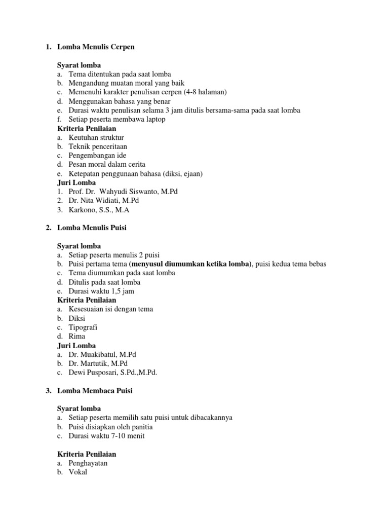 PDF) LOMBA PENULISAN CERPEN FIX | aries setyorini - Academia.edu