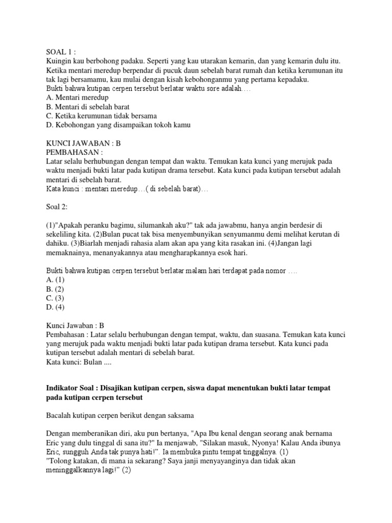Contoh Soal Menunjukkan Bukti Latar dan Watak - PELAJARAN BAHASA …