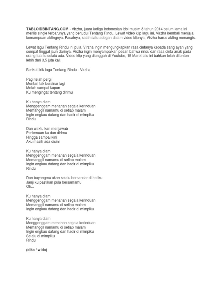 Lirik lagu - Tentang Rindu - Virzha - Wattpad