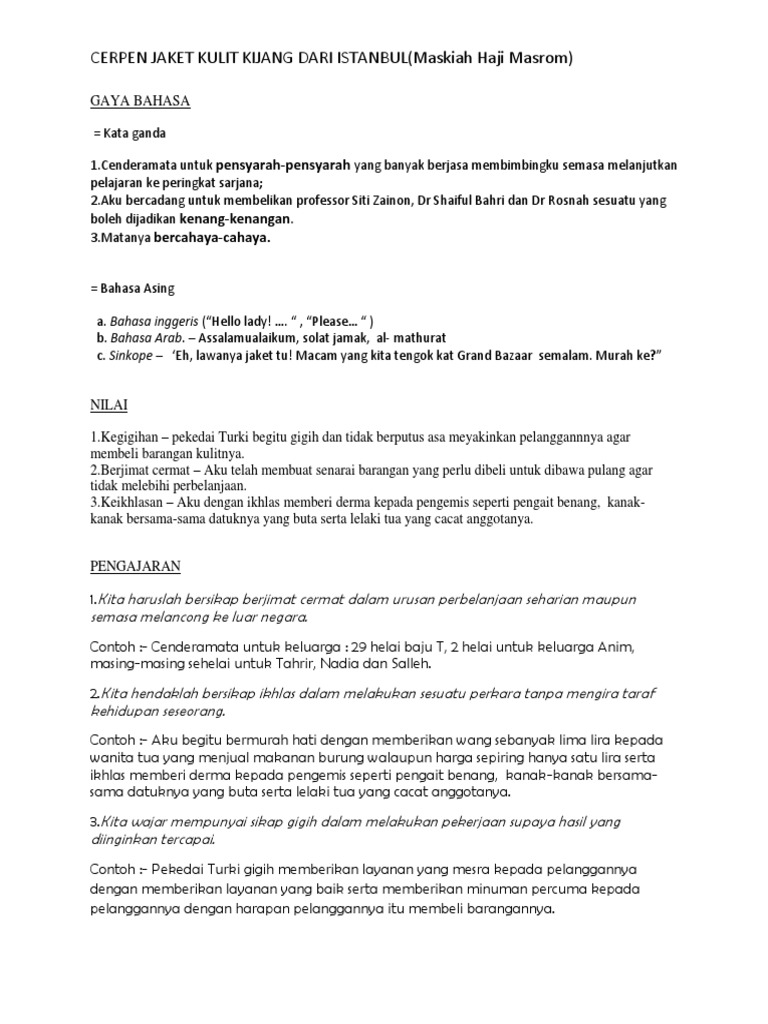Cerpen Jaket Kulit Kijang Dari Istanbul (Nota)