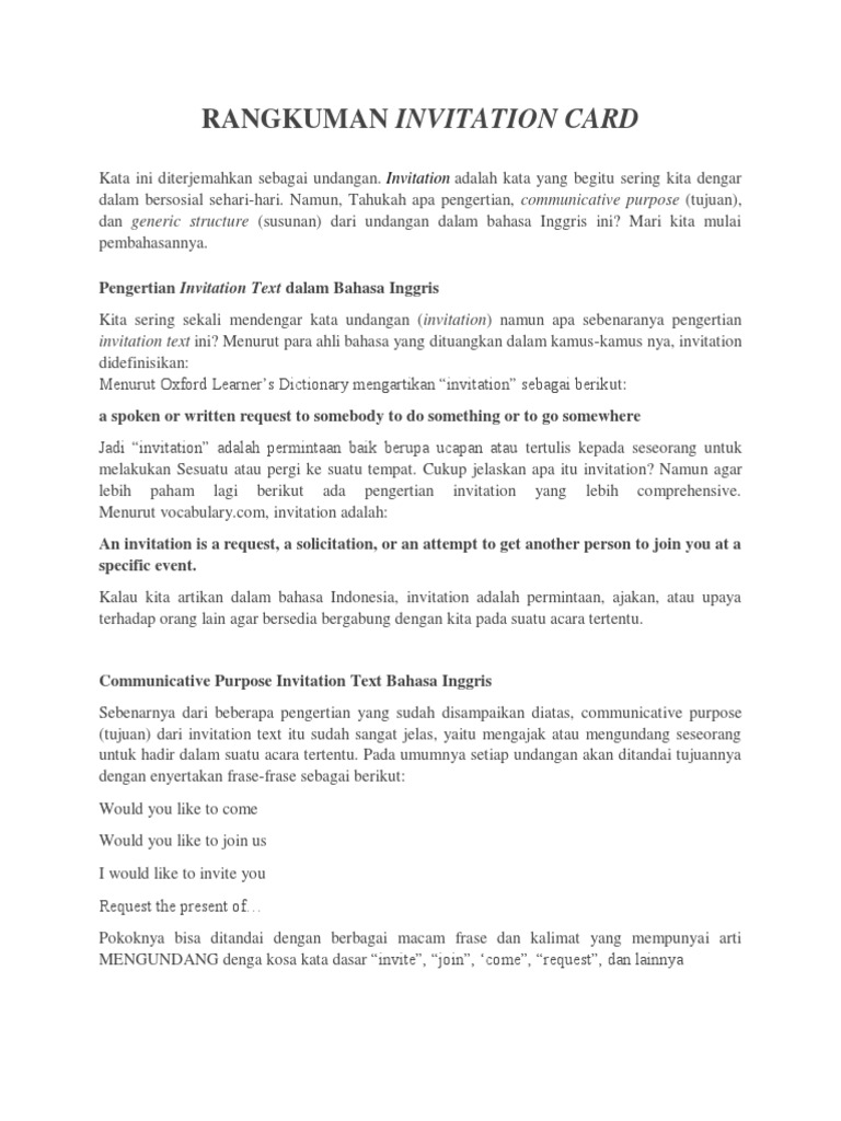 Contoh Undangan Bahasa Inggris Dan Artinya | Blog Pendidikan