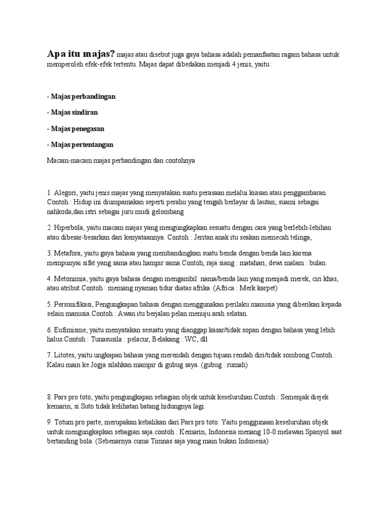 58+ Macam-Macam Majas Beserta Contoh dan Penjelasannya [Lengkap]