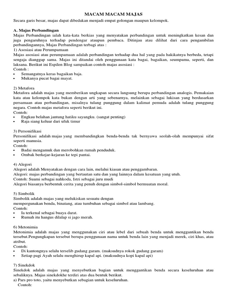 DOC) Pengertian Majas dan Macam-Macam Majas | Anto Subagja - Academia.edu