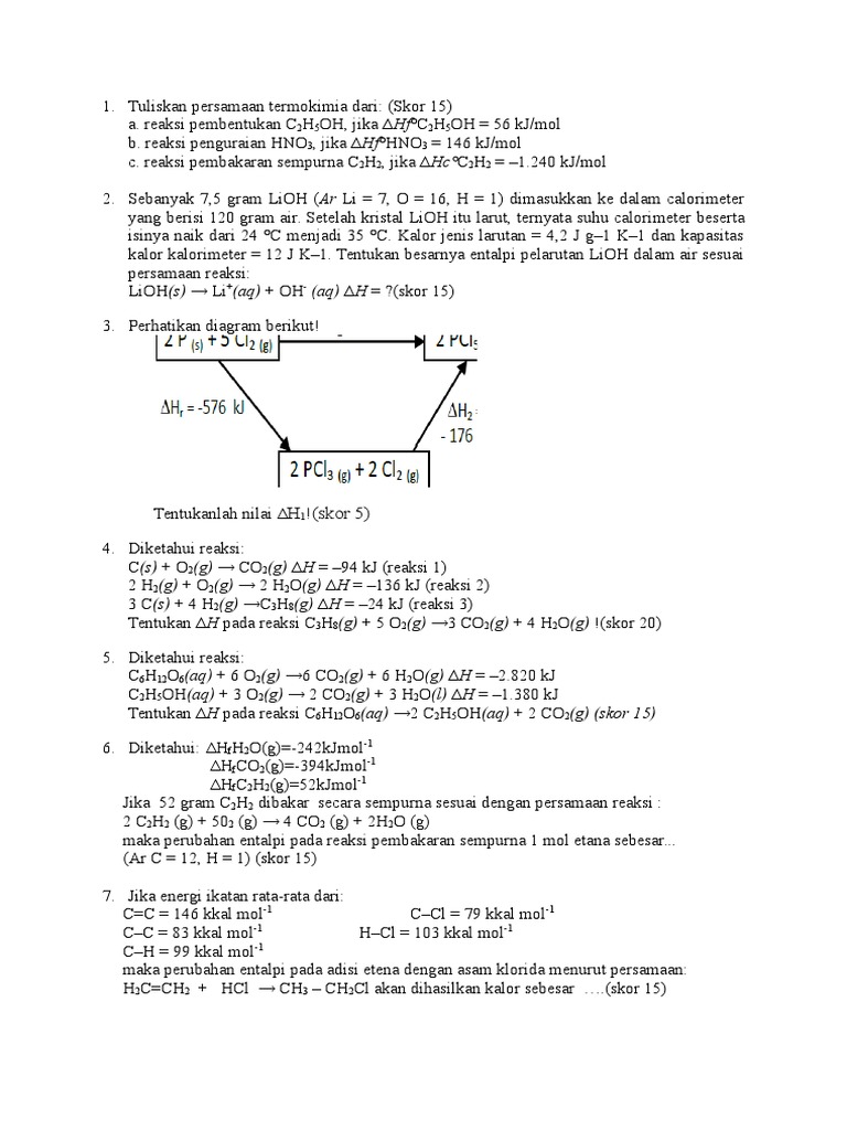 Bank Soal Kimia Bab Termokimia Dan Hidrokarbon