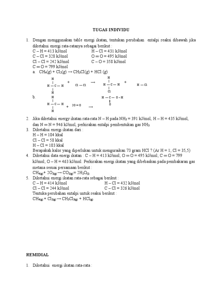 Soal Individu Energi Ikatan, Remidial, Pengayaan