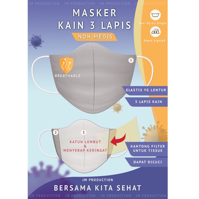 Jual Masker Kain 3 ply 3 Lapis Bahan Katun Micro WASHABLE bukan …