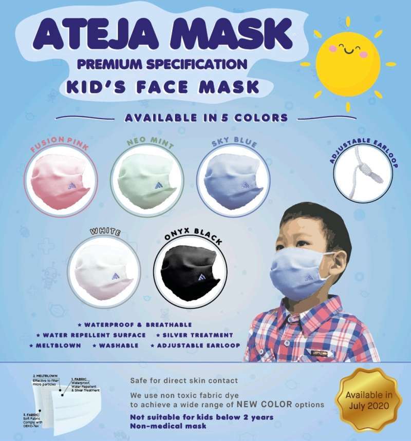 Jual KIDS SIZE ATEJA MASK (1 BOX) Masker Kain ANAK Warna Warni …