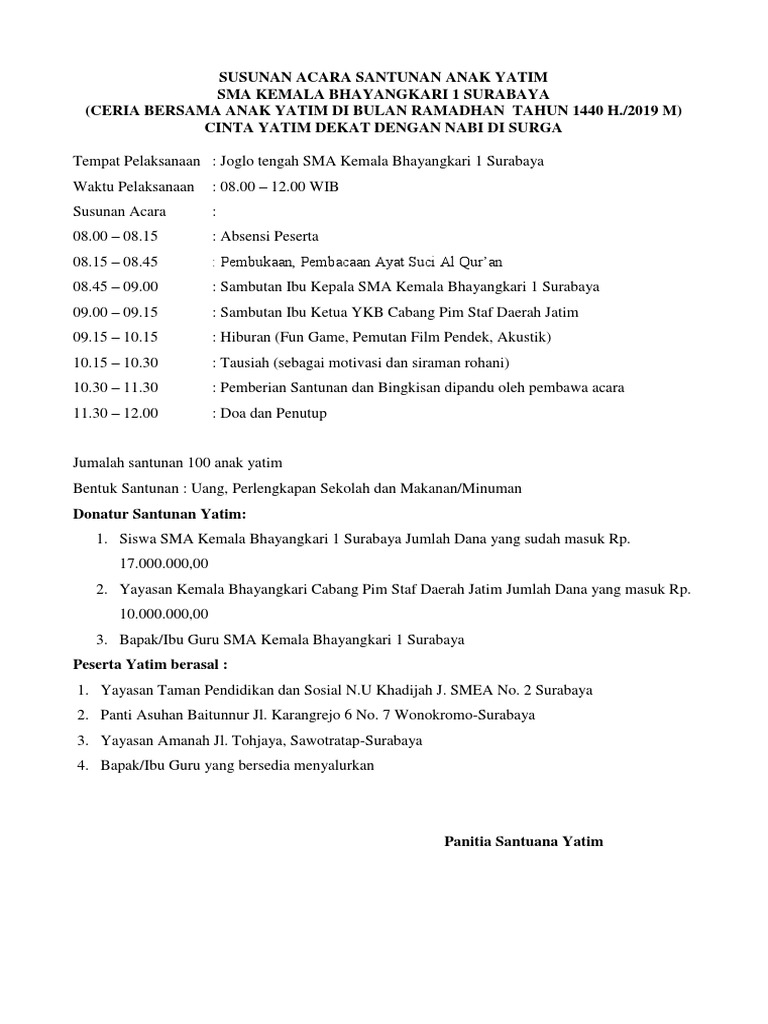 Susunan Acara Santunan Anak Yatim Di Sekolah