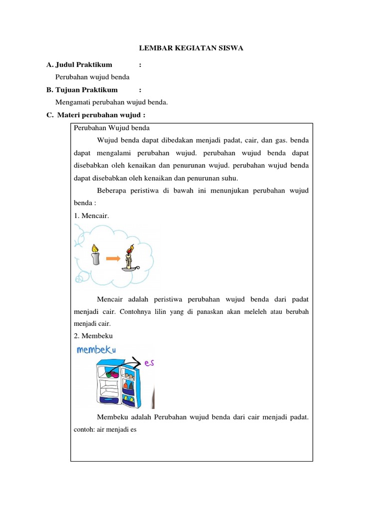 DOC) Handout Pengembangan Bahan Ajar (perubahan wujud benda) | Rini Rufaedah - Academia.edu