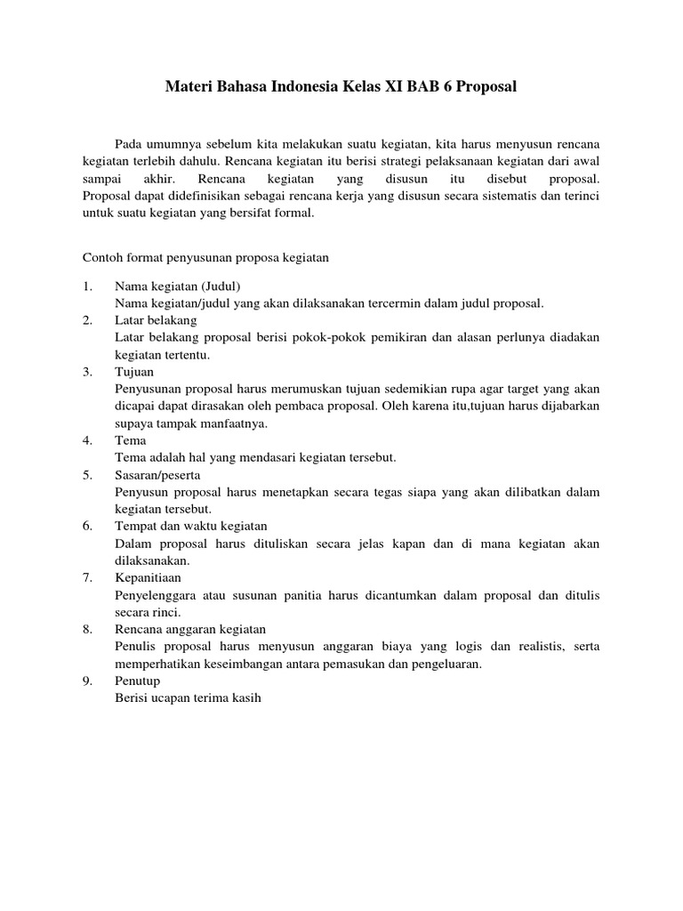 Materi Bahasa Indonesia Kelas XI BAB 6 Proposal