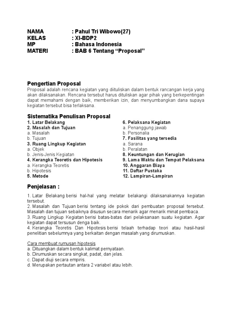 Materi Pelajaran Bahasa Indonesia: Proposal