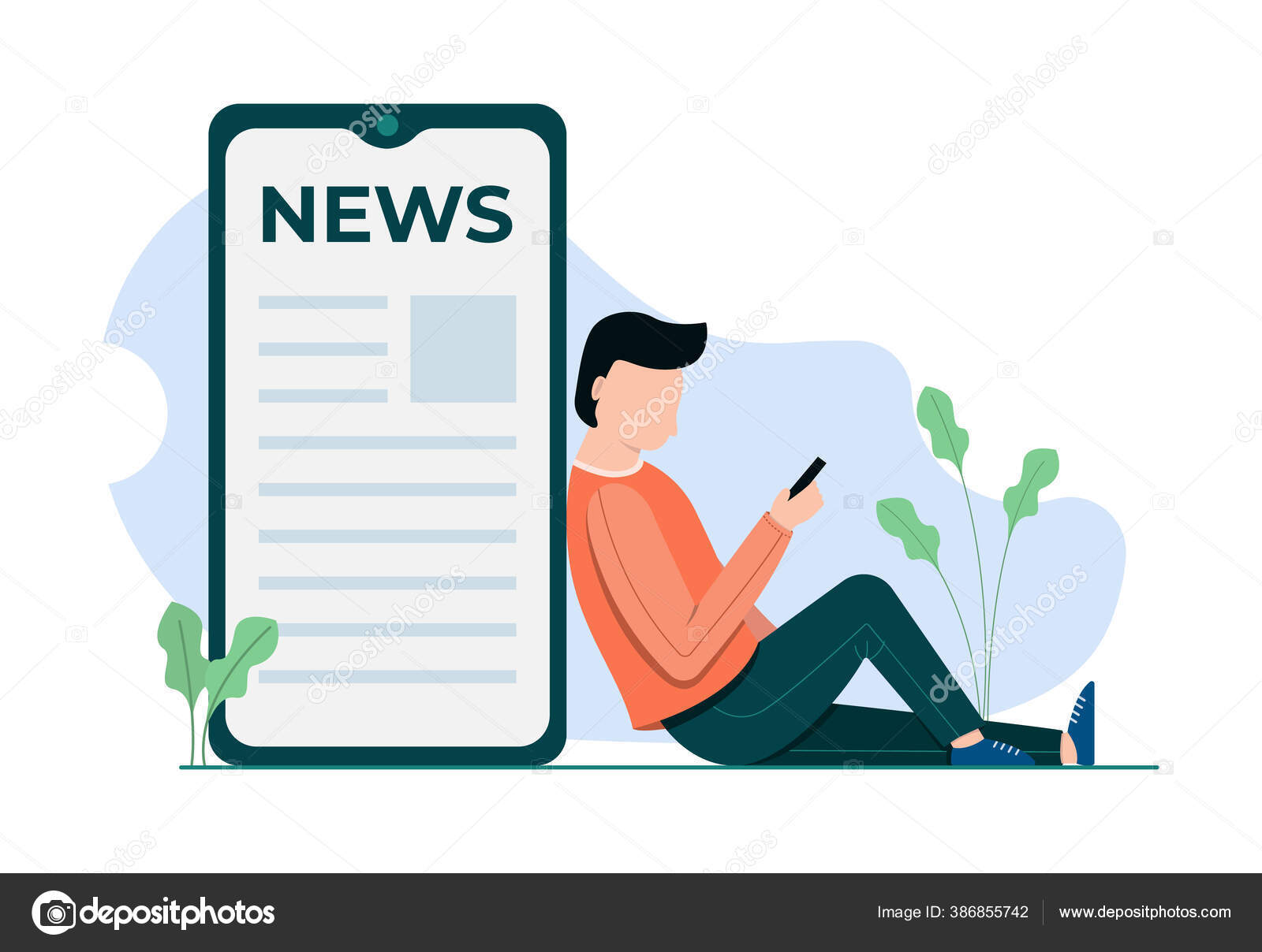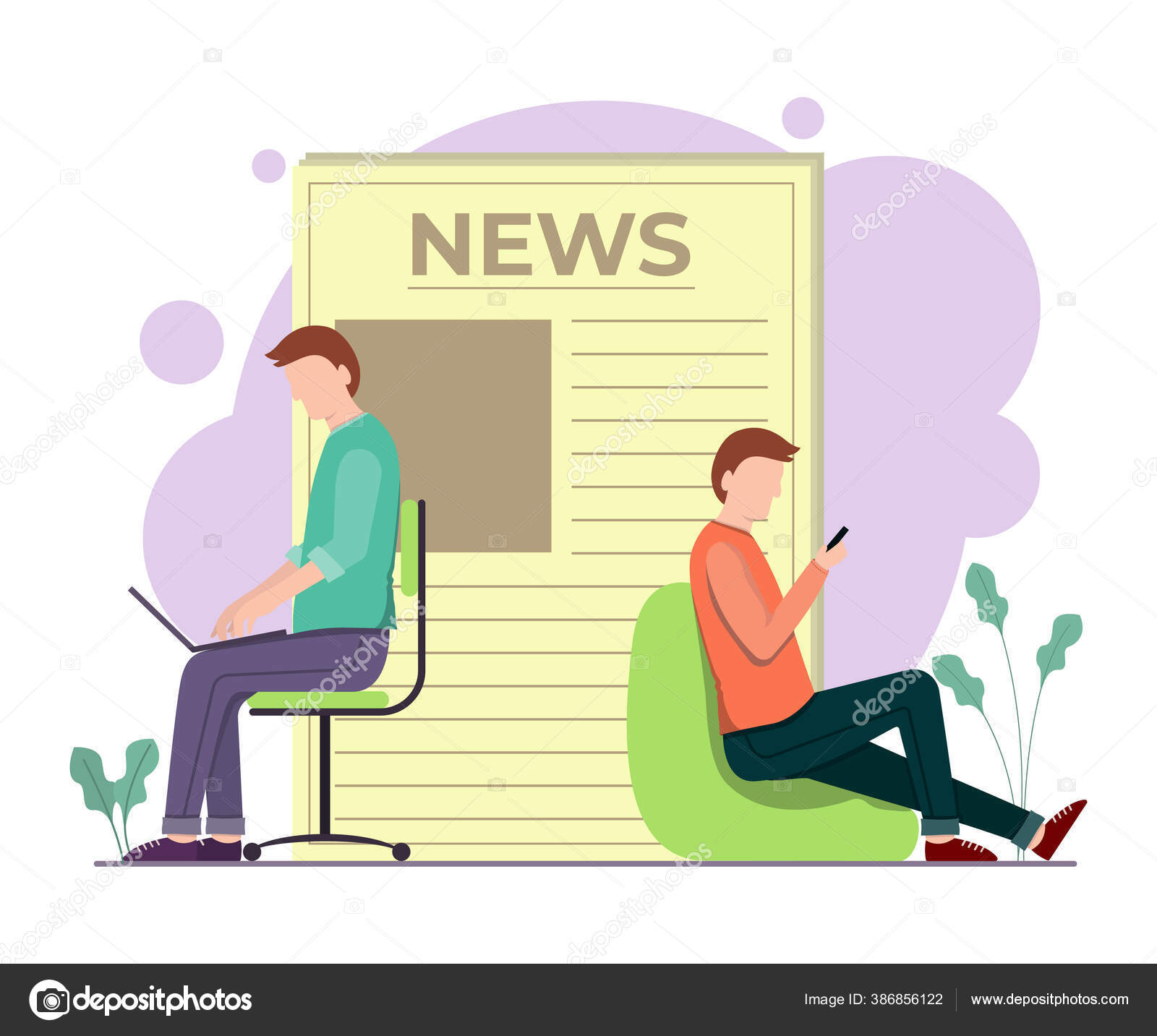 Vektor Gambar Siaran Berita Gadget Orang Yang Mencari Berita …