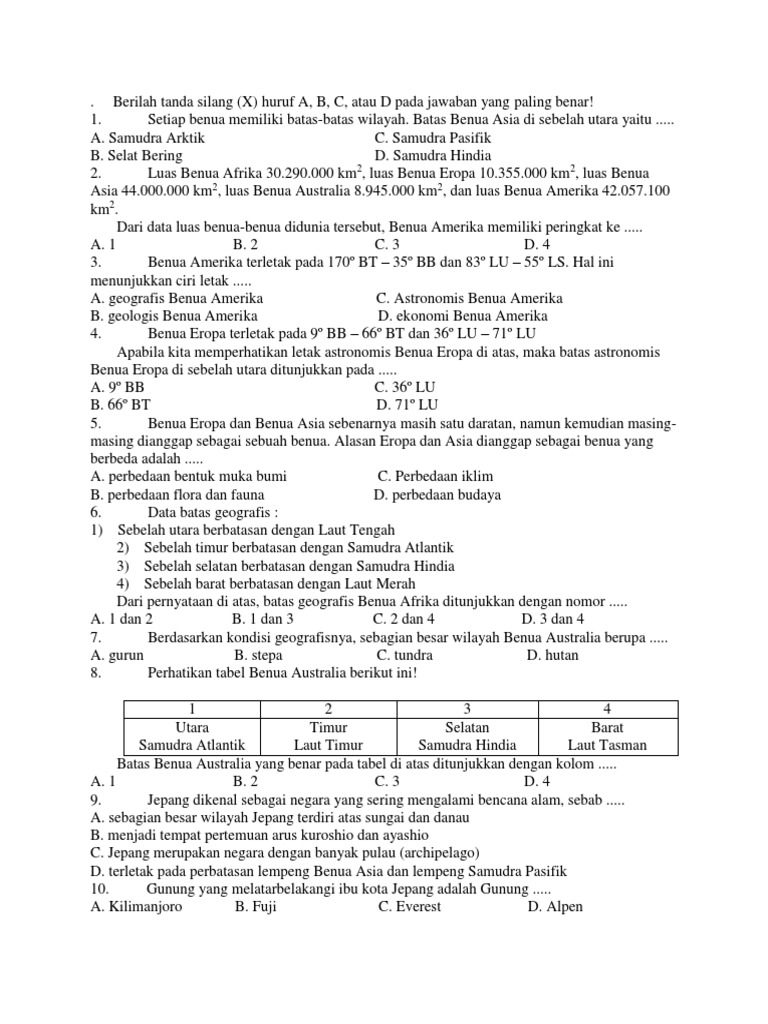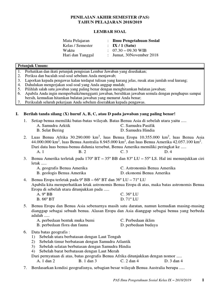 Kisi-Kisi, Soal dan Kunci Jawaban PAS IPS SMP Kelas 9 Semester …