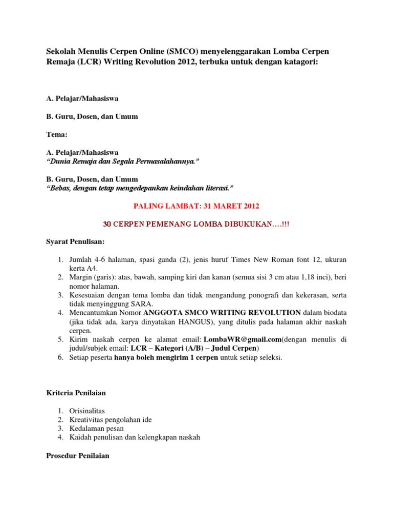 PORTAL KOMPETISI DAN BEASISWA: LOMBA MENULIS CERPEN REMAJA (LMCR …