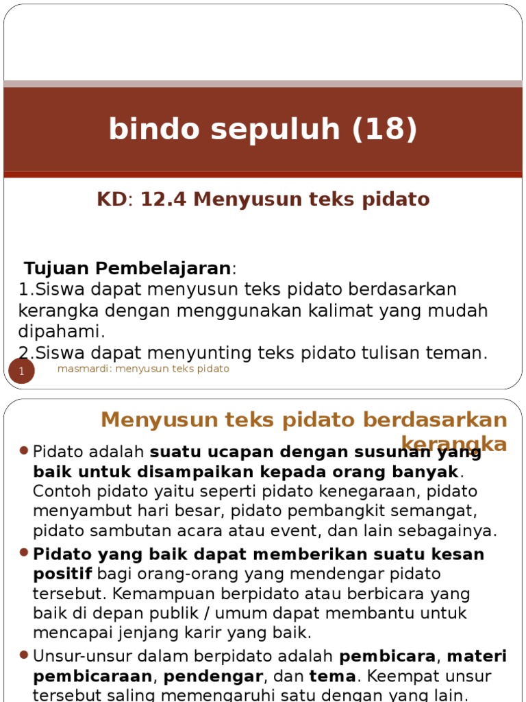 bindo sepuluh (18): KD: 12.4 Menyusun teks pidato