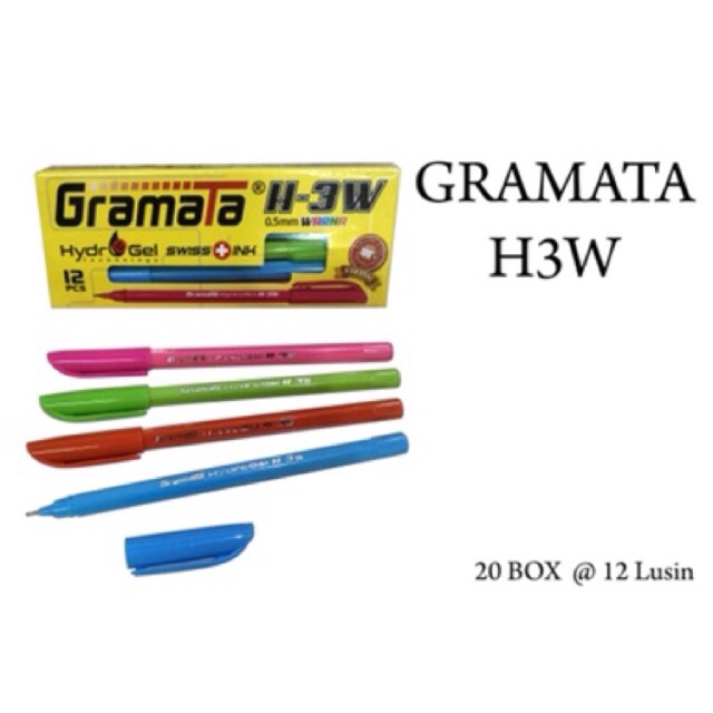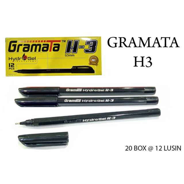 12 pcs pulpen gel merk GRAMATA H3 tinta hitam | Shopee Indonesia