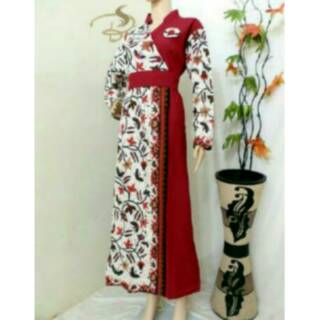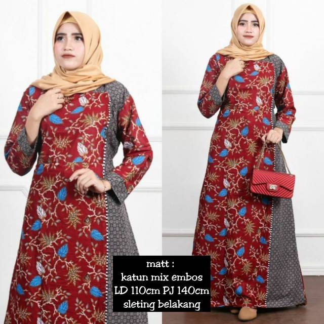 LONGDRESS MADURA JAYA CAKAR RED SERIES FLORAL DAUN BATIK KOMBINASI POLOS GAMIS MURAH | Shopee Indonesia