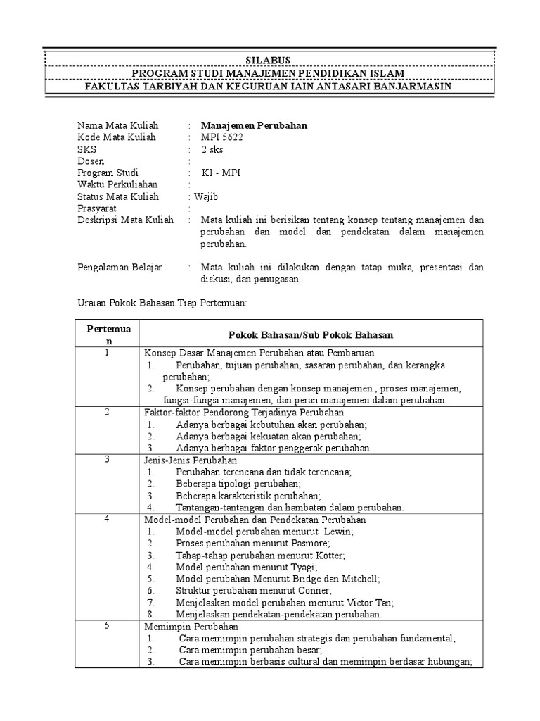 Manajemen Perubahan - Silabus Online IAIN Antasari