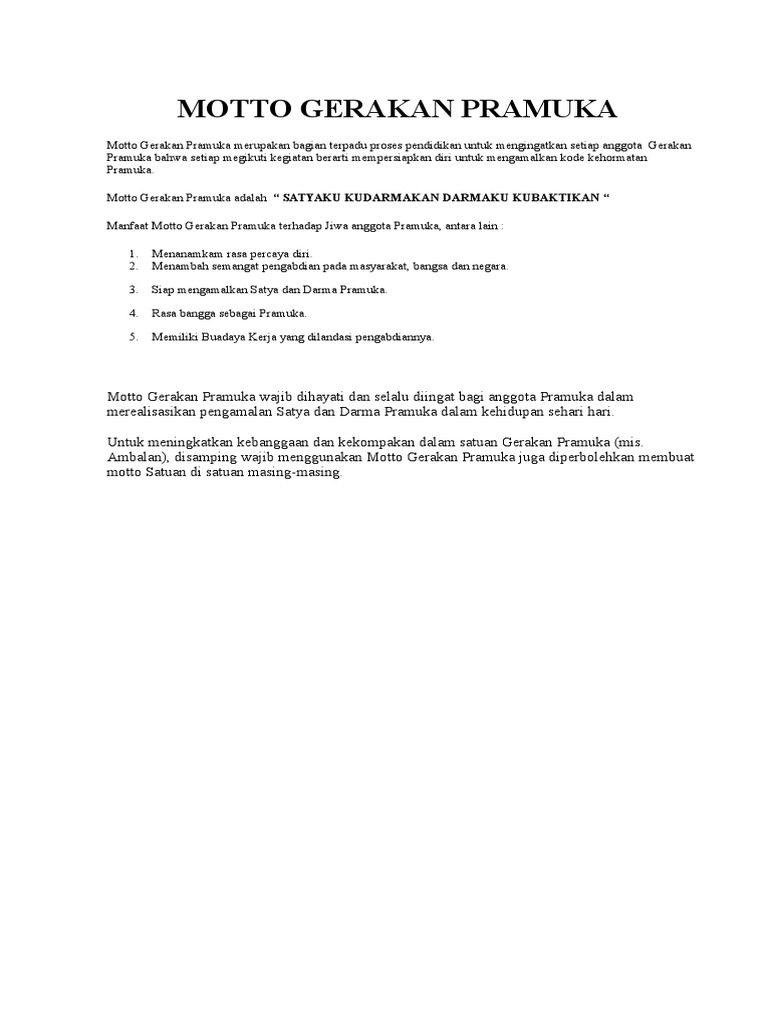 Motto Gerakan Pramuka [Materi Pramuka] - Kwartir Ranting Ngraho