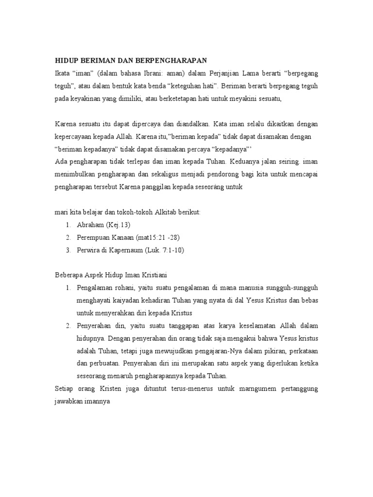 hidup beriman dan berharap