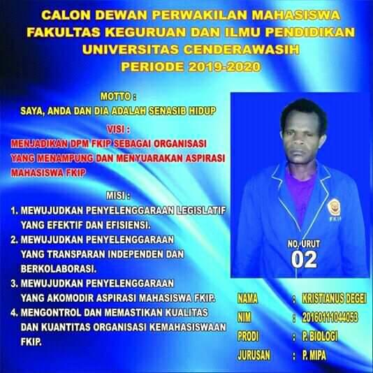 calon dewan perwakilan mahasiswa (DPM) fakultas keguruan dan ilmu pendidikan (FKIP) di universitas cenderawasi (UNCEN).
