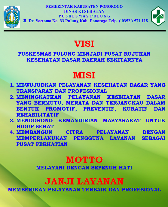 PUSKESMAS PULUNG: VISI DAN MISI PUSKESMAS PULUNG