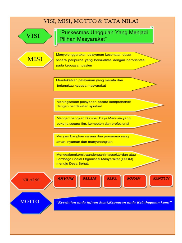 Visi, Misi, Motto & Tata Nilai: Puskesmas Unggulan Yang Menjadi Pilihan Masyarakat