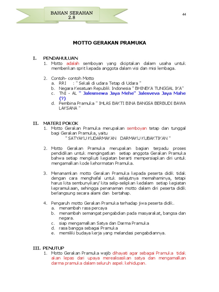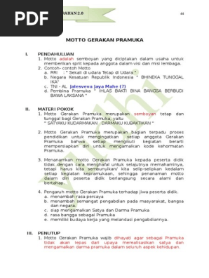 Salam Pramuka b. Motto c. arti Lambang Gerakan Pramuka. 1 Dapat menyebutkan: kepada Gerakan Pramuka - [PDF Document]