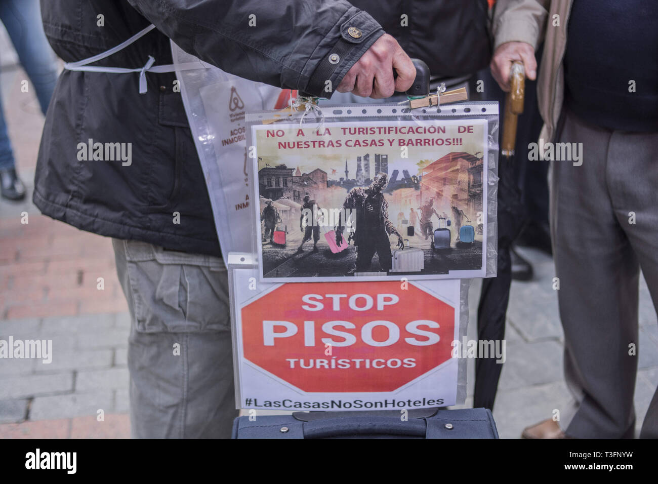 Madrid, Madrid, Spain. 9th Apr, 2019. A man seen with a placard with the motto, not