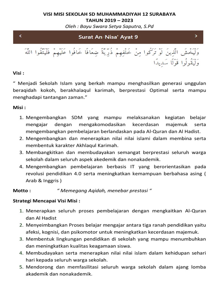 Visi Dan Misi Sekolah Dasar Islam