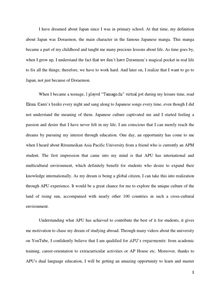 APU Scholarship essay | Cognition | Psychology & Cognitive Science