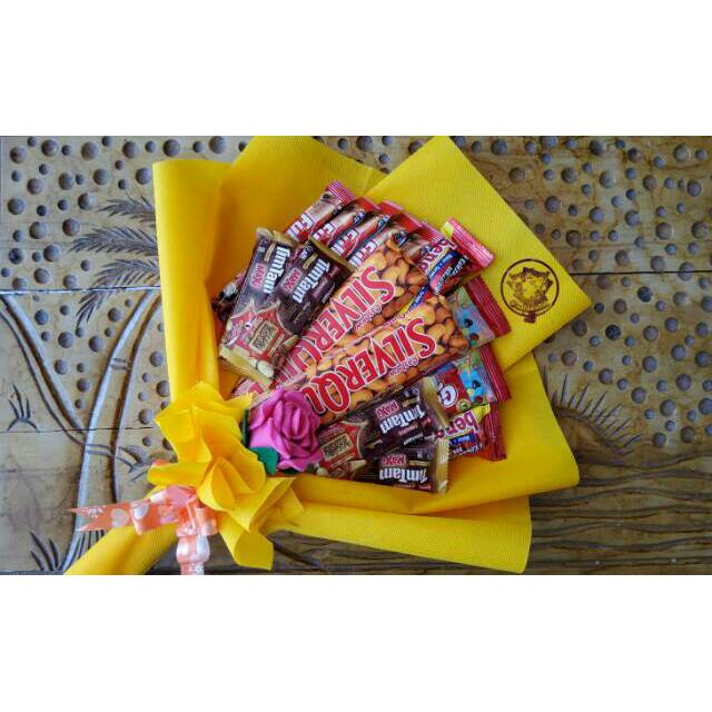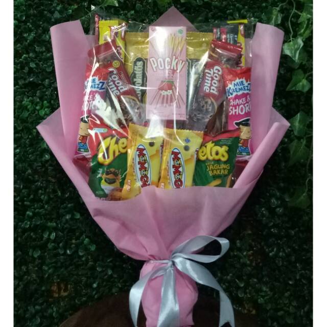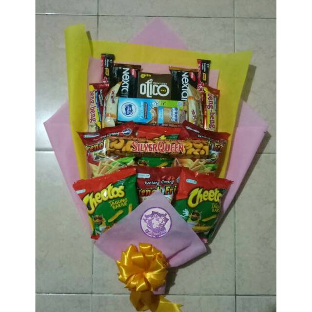 Buket snack / bouquet jajan / bouquet bunga makanan / bunga makanan free kartu ucapan | Shopee Indonesia