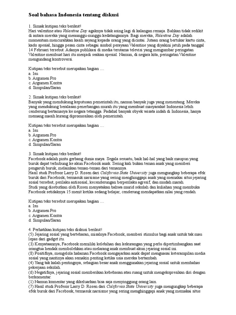 Soal Bahasa Indonesia Tentang Diskusi