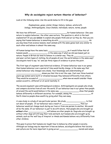 Sociology essay on nature vs nurture