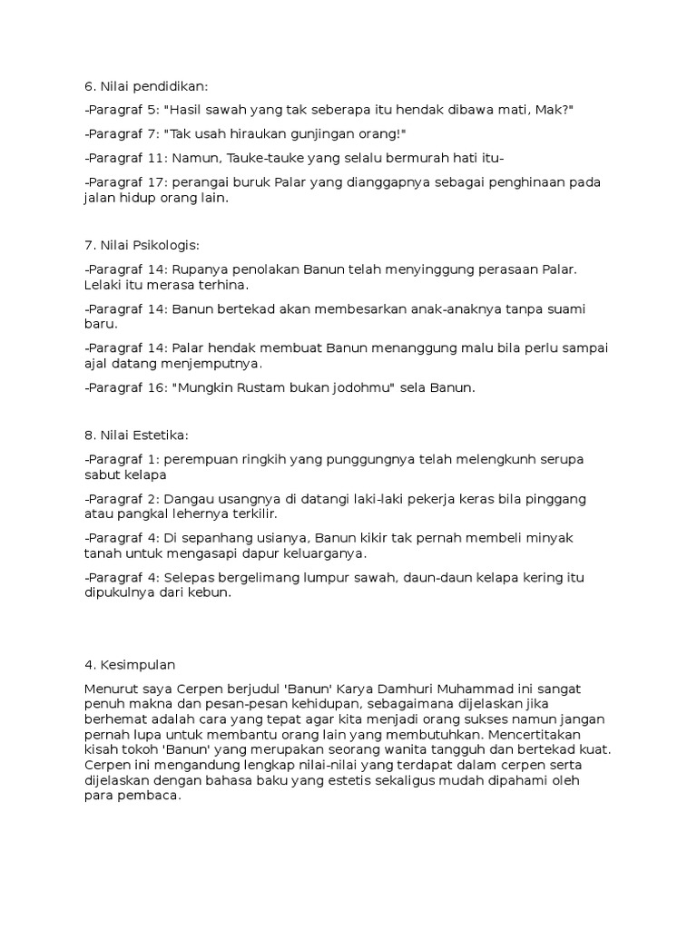 Nilai Nilai Yang Terkandung Dalam Cerpen Banun