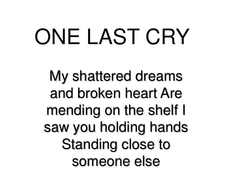 ONE LAST CRY" LYRICS by K: My shattered dreams and…