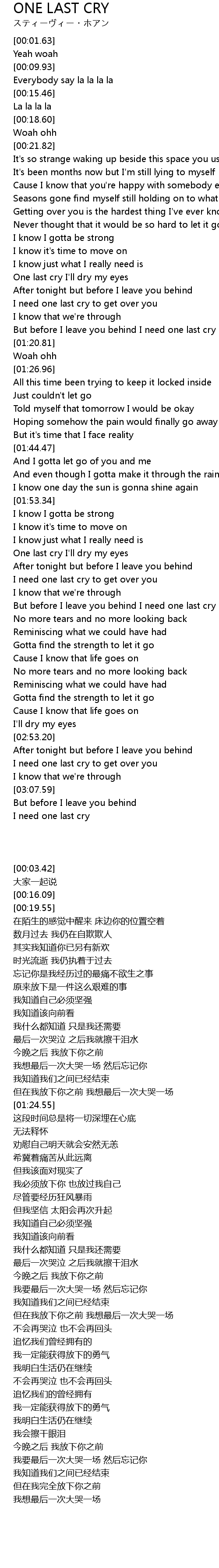 One Last Cry Lyrics - Studio Musicians - Only on JioSaavn
