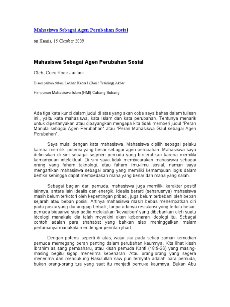 Peran Mahasiswa Islam Sebagai Agen Perubahan