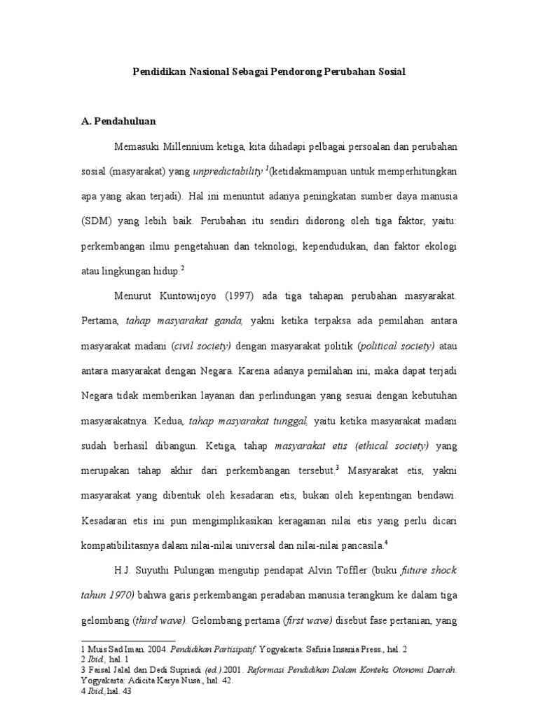 Pendidikan Sebagai Pelestarian Nilai Dan Perubahan Sosial