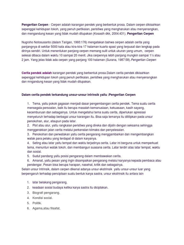 Pengertian Cerpen Dan Unsur Intrinsik Cerpen