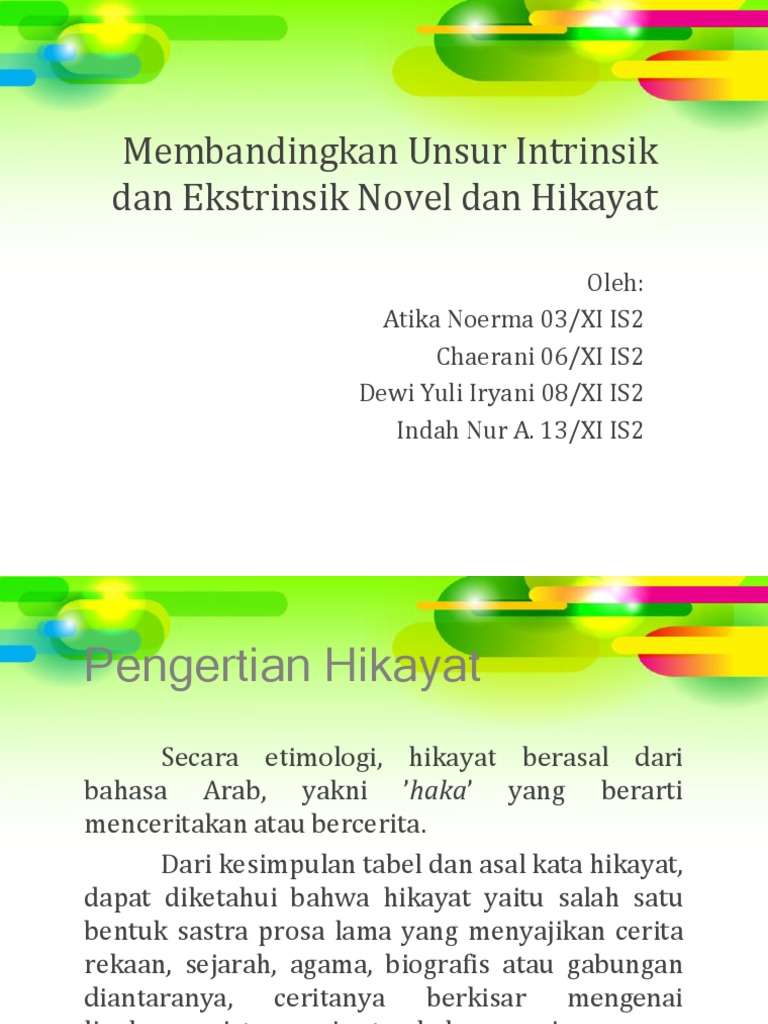 Membandingkan Unsur Intrinsik Dan Ekstrinsik Novel Dan Hikayat - [PPTX Powerpoint]