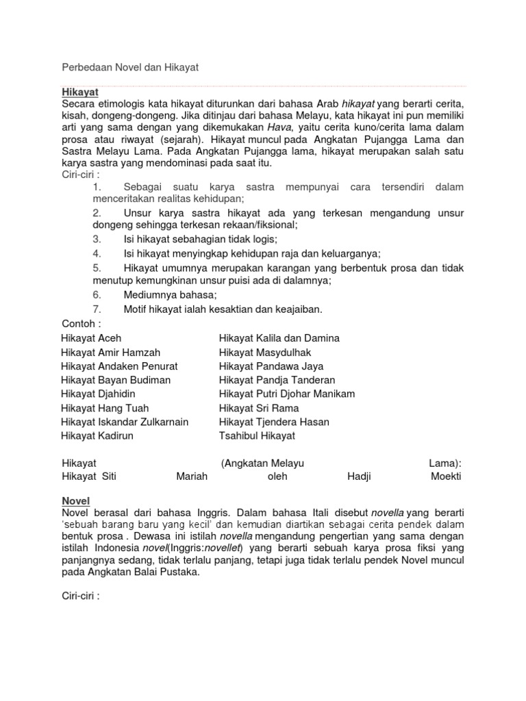 Perbedaan Novel Dan Hikayat