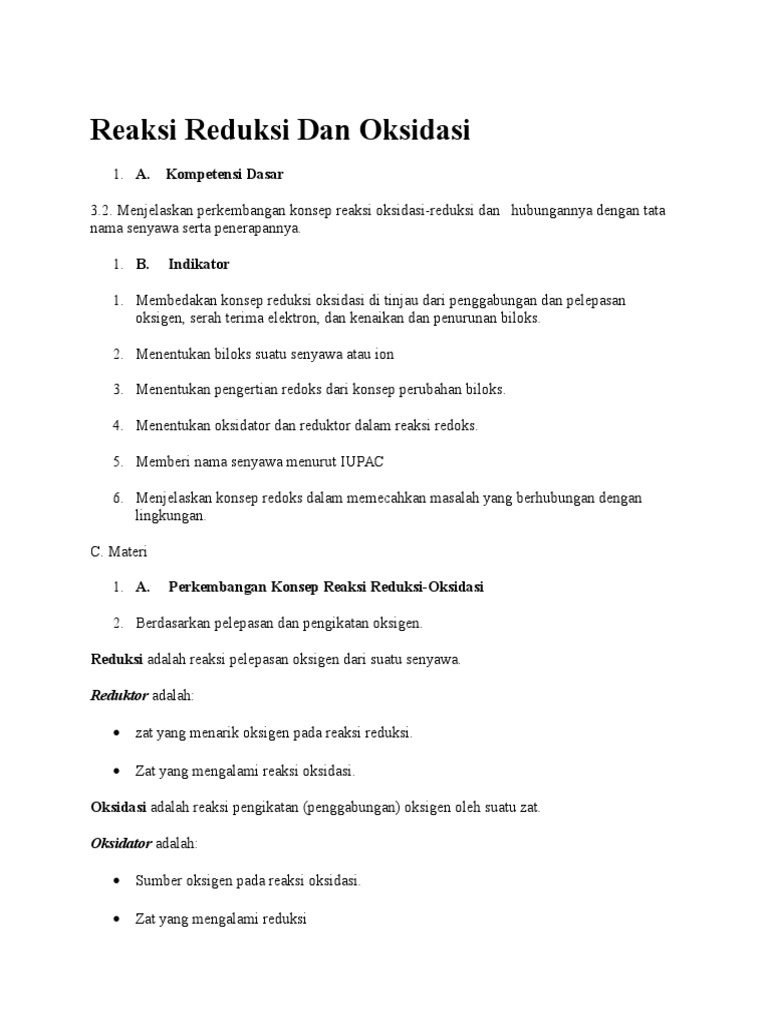 Reaksi Oksidasi Reduksi (Redoks) - Bangku Sekolah