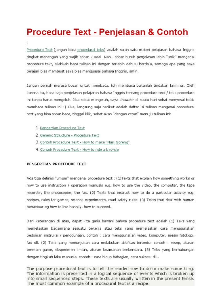 Pengertian Procedur Text Dalam Bahasa Inggris Lengkap - Pendidikan Bahasa Inggris