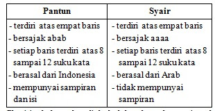 Sebutkan 5 Persamaan Pantun Syair Dan Gurindam Dalam Bentuk Tabel …