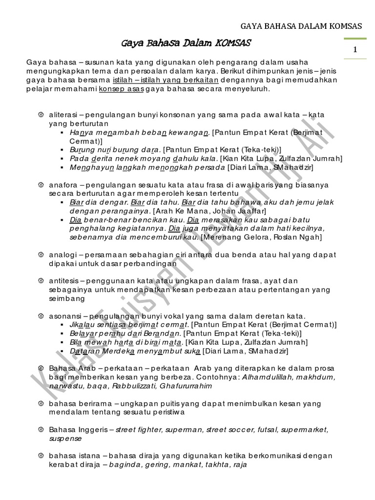 Nota Gaya Bahasa dalam KOMSAS 2014