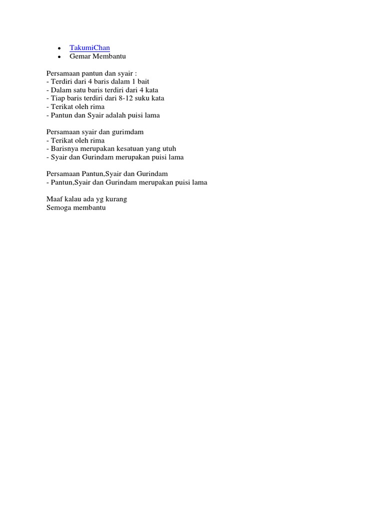 Sebutkan 5 Perbedaan Dan Persamaan Pantun Syair Dan Gurindam …
