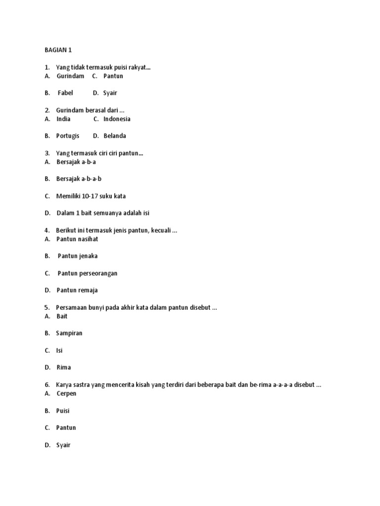 Contoh Soal Puisi Rakyat (Pantun, Syair, Gurindam) - Kelas VII …