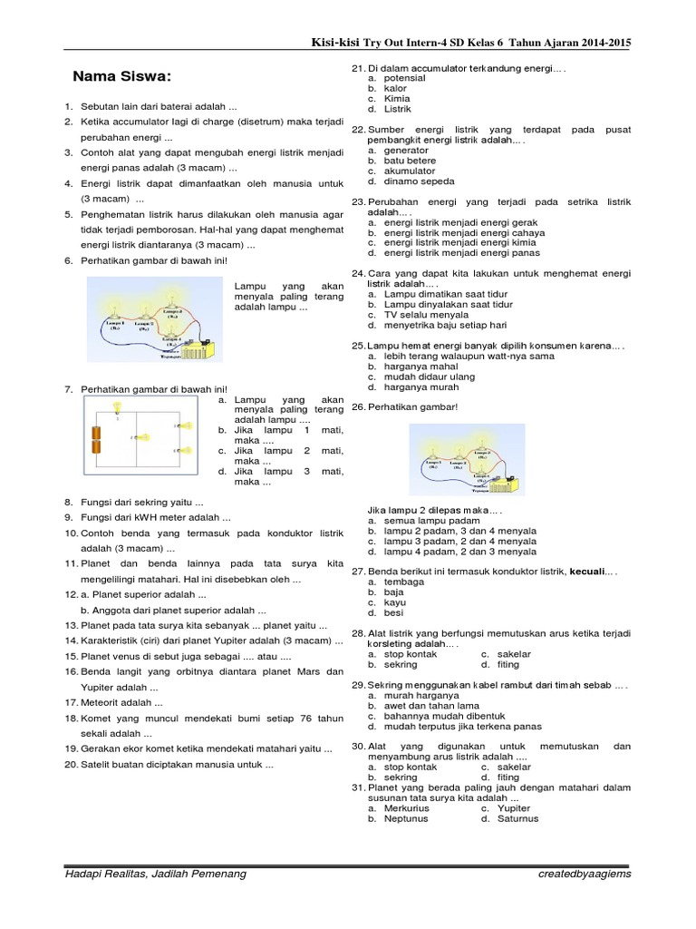 Soal IPA Kelas 6 Bab 8 (Perpindahan dan Perubahan Energi Listrik …
